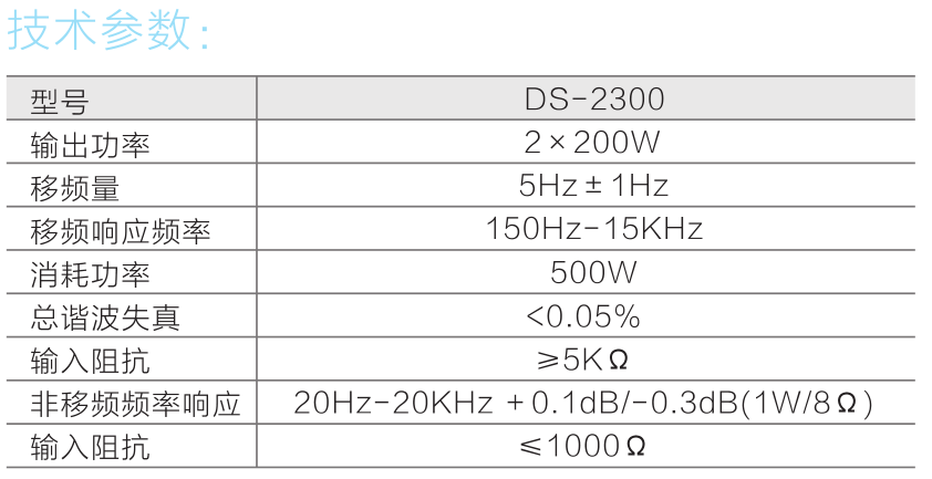 频率响应:非移频状态20Hz-20KHz;移频状态150Hz-15KHz