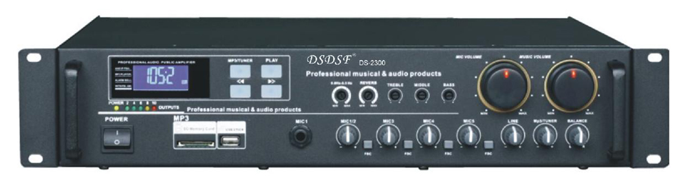 5路话筒输入,2路话筒优先功能,1路线路输入,1路线路输出;